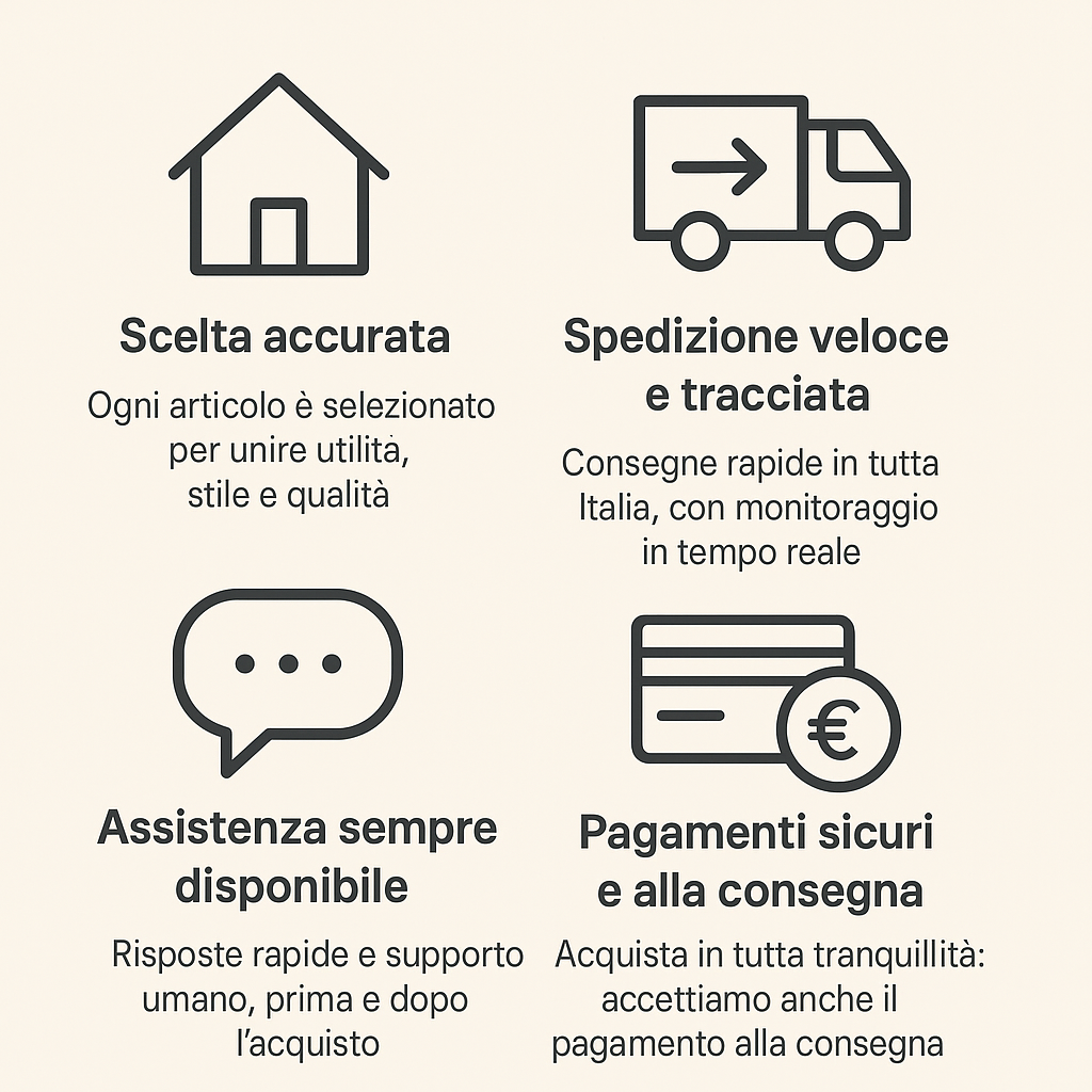 Scopri un mondo dedicato a te e alla tua casa: accessori pratici, idee per il benessere, soluzioni intelligenti e oggetti che rendono speciale ogni giorno. Dalla cucina al bagno, dal relax personale alla cura degli ambienti, selezioniamo solo ciò che unisce utilità, qualità e stile.